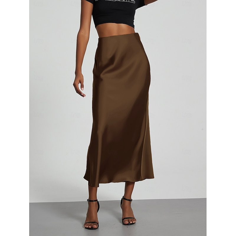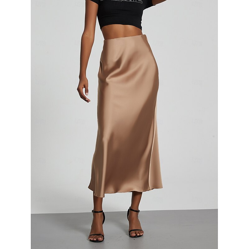 More information about Women's Skirt Bodycon Elegant Fashion Midi High Waist Skirts Plain Micro-elastic Party Street Black Wine Khaki Dark Grey Spring Satin Polyester