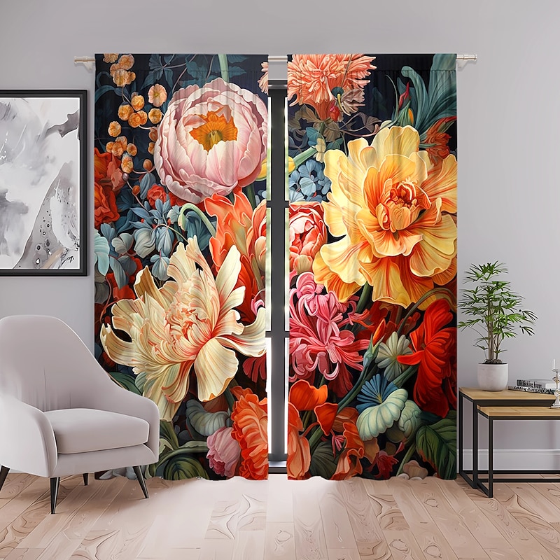 HOT ! 2 Panels Curtains For Living Room Bedroom, Flowers Curtain Drapes for Bedroom Door Kitchen Window Treatments Thermal Insulated Room Darkening