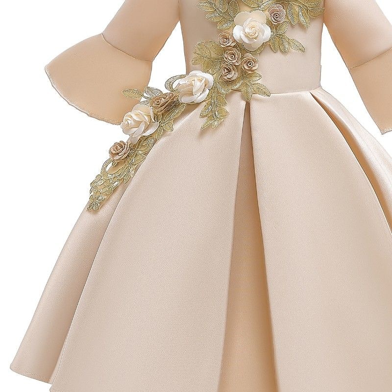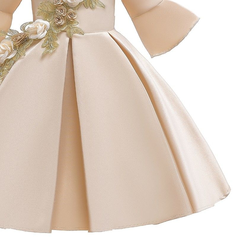 More information about Kids Girls' Party Dress Floral 3/4 Length Sleeve Formal Performance Wedding Tie Knot Fashion Adorable Cotton Midi Party Dress Floral Embroidery Dress Flower Girl's Dress Summer Spring Fall 2-9 Years