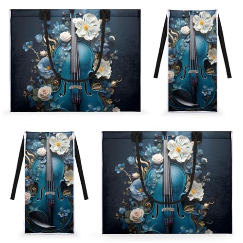 Blue Guitar Flower Tote Bag for Women Large Beach Bag Reusable Tote Bags for Work Travel Beach Shopping 4