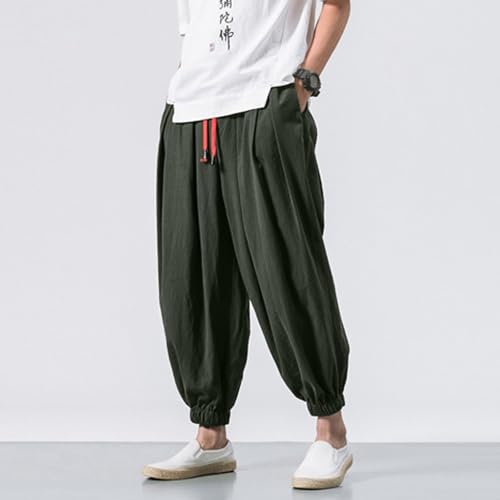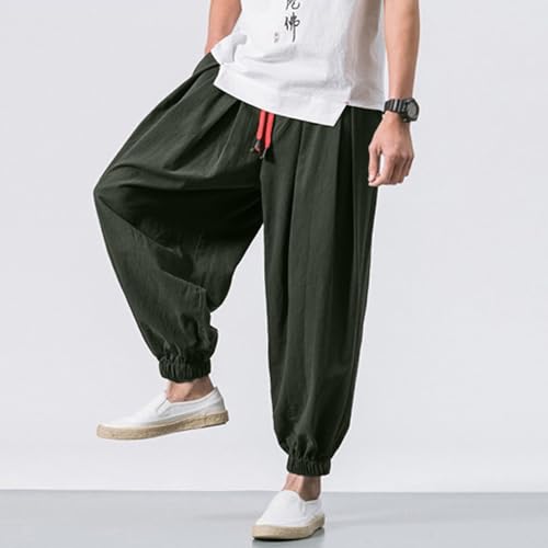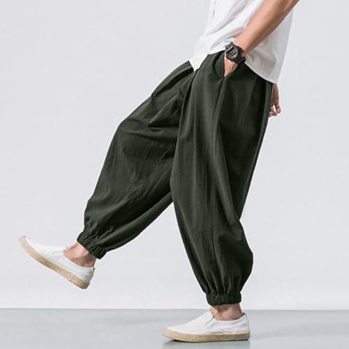 DuDubaby Baggy Pants Men's Cotton Linen Harem Loose Stretchy Waist Casual Hippie Trousers Lightweight Beach 7