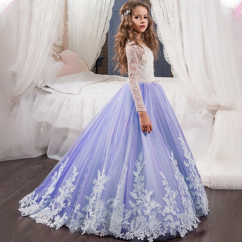 More information about Flower Girl Dress Kid's Girls' Princess Dress Performance Wedding Party Elegant Beautiful Mesh Flower Long Sleeve Crew Neck White Pink 4 years+
