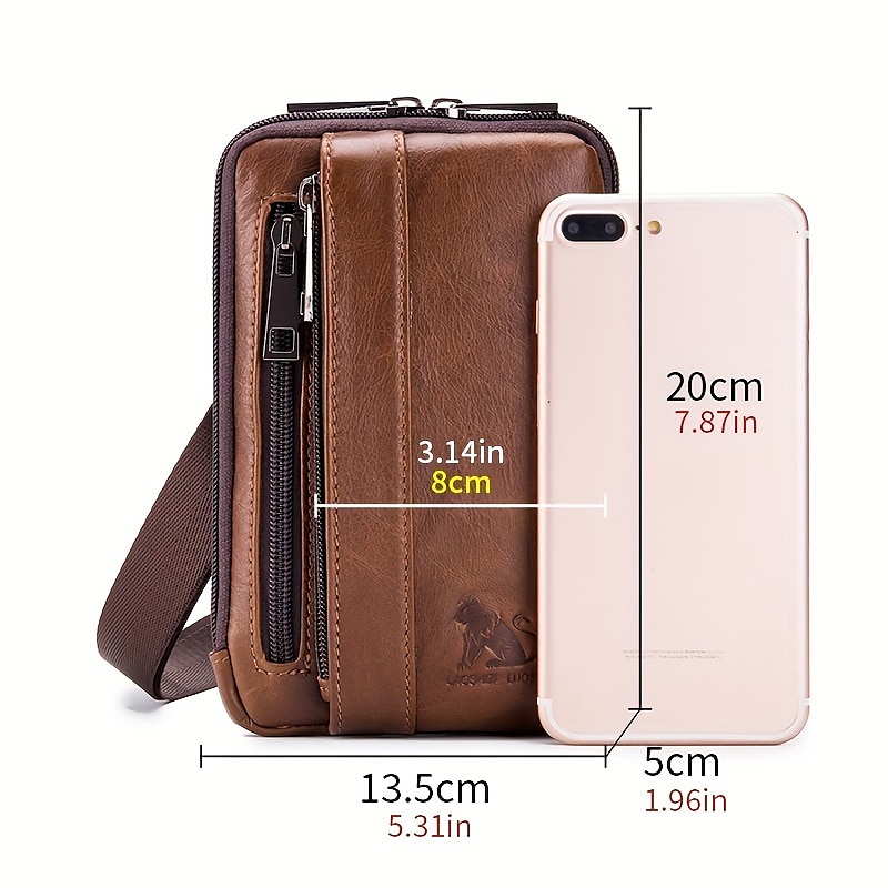 Sleek Brown Leather Vertical Sling Bag - Compact Men's Crossbody Bag with Multiple Zippered Pockets, Ideal for Daily Use and Travel 13