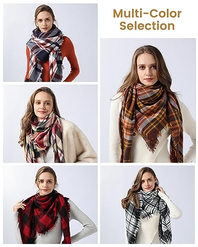 • SUITABLE SIZE - Our plaid scarf measures approximately 55"L x 55". Large oversized scarf has multiple uses, as picnic decoration, shawl, wrap while outing or soft blanket at home, light but warm.
