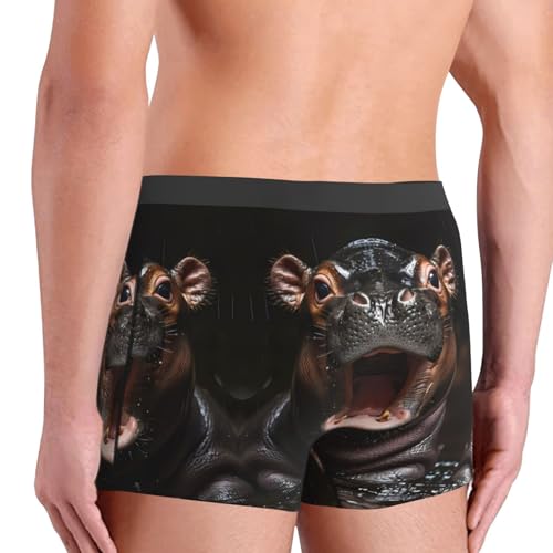 HOT ! Mens Underwear Boxer Briefs - Playful Baby Hippo Splash Breathable Men's Boxer Briefs with Flex Waistband