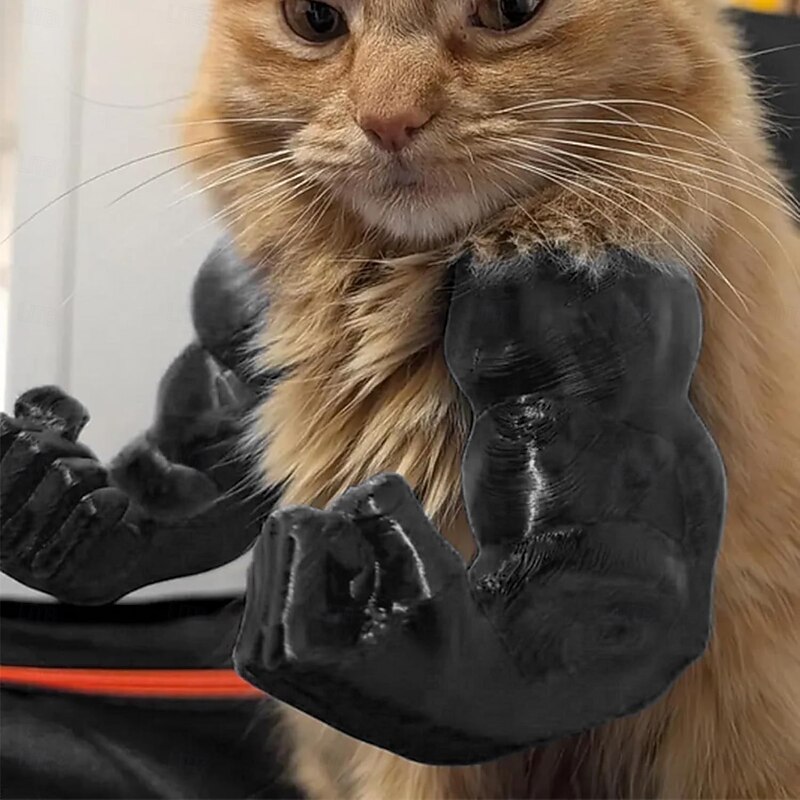 3D Printed Cat's Neck Arms with Muscle Funny Cat Muscle Arms Halloween Cat Costume Funny Kitten Superhero Pet Cosplay Accessories Birthday Party Supplies 1