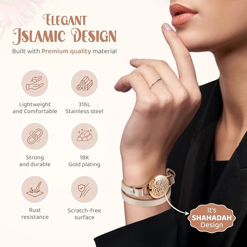 • Premium Craftsmanship with Spiritual Elegance – The SHAHADA & Allah Bracelet Aromatherapy Oil Arabic Jewelry for Women is exquisitely crafted from 316L stainless steel with 18K gold plating. This elegant bracelet is a perfect expression of faith, making it an ideal choice for Ramadan gifts, Islamic gifts, and Eid gifts for women who cherish both style and spirituality.