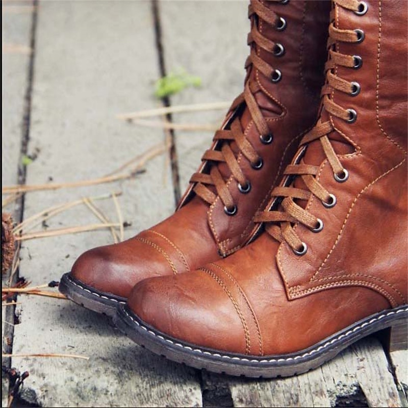 $59.99 - Women's Vintage Brown Faux Leather Riding Boots with Lace-Up and Buckle Detail - Knee-High Equestrian Style for Casual and Outdoor Wear 2025. Shop for cheap Riding Boots online? Buy at lightinthebox.com on sale today!