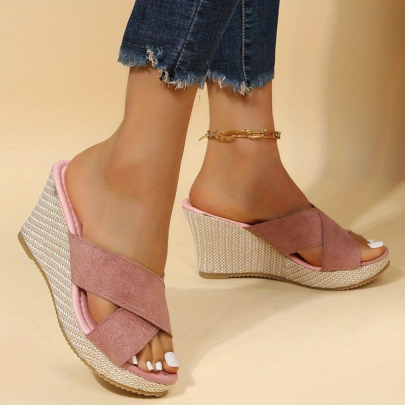 Highlights [Fabric] : Crafted from elegant satin material, these women's sandals offer a smooth and refined look that ensures both style and comfort throughout summer days. [Fit] : The wedge heel design provides a comfortable lift, lending a modern and chic silhouette that complements both casual and elegant outfits. [Design Highlights] : Featuring a stable and fashionable wedge heel constructed from woven material, these sandals add a touch of sophistication. The solid color and crisscross straps ensure a secure fit, while the open-toe design offers a refreshing feel perfect for warm weather. [Occasions] : Ideal for outdoor adventures, beach outings, and casual summer occasions, these sandals are versatile enough to pair with both jeans and dresses, making them a must-have in any wardrobe. [Size Range] : Available in various sizes to ensure the perfect fit, including US5.5 / EU35 / UK3.5 to US8.5 / EU39 / UK6.5.