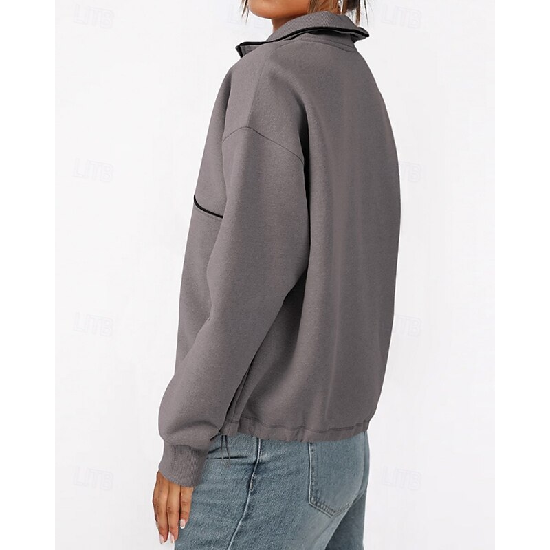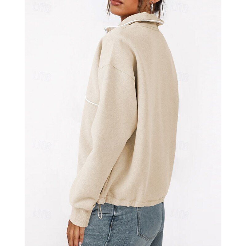 HOT ! Women's Sweatshirt Track Top Pullover Patchwork Zipper Long Sleeve Top Athleisure Fall Color Block Thermal Warm Windproof Tennis Golf Running Sportswear Activewear Black White