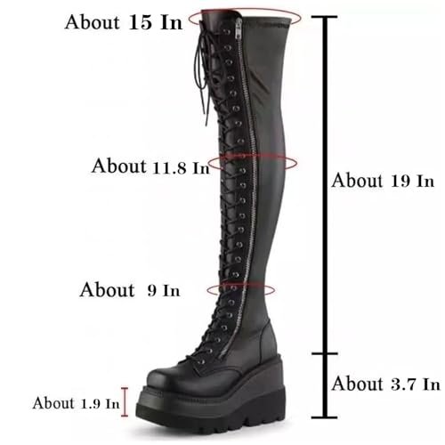 SACFOF Womens Platform Over The Knee Wedges Chunky Booties Winter Buckles Long Boots Motorcycle Punk Goth Combat Boots 3
