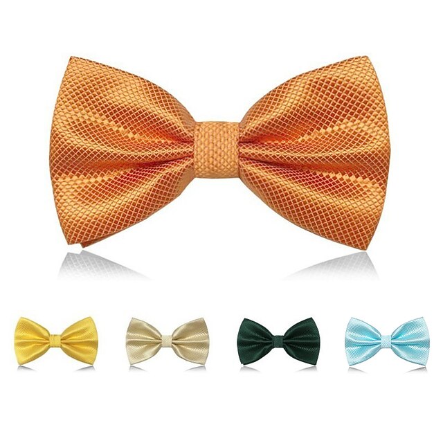 : The collection features a timeless plaid pattern that adds a sophisticated touch to each tie. Available in vibrant colors like orange, beige, yellow, light blue, and dark green, these bow ties are designed to complement a wide array of outfits, making them versatile accessories for any gentleman.