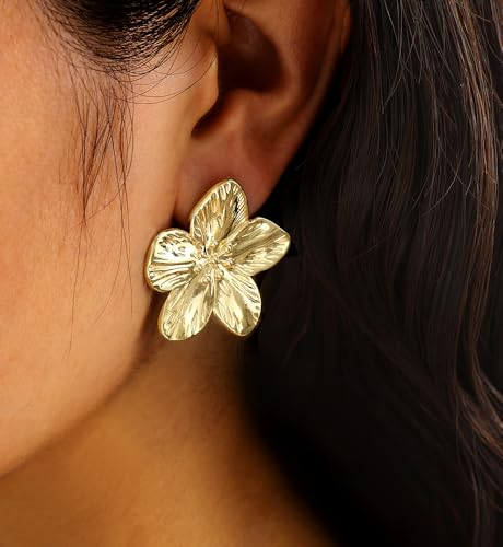 Big Gold Statement Earrings for Women Trendy, Chunky Unique Leaf Dangle Earrings, Fashion Gold Large Flower Earrings Jewelry 5