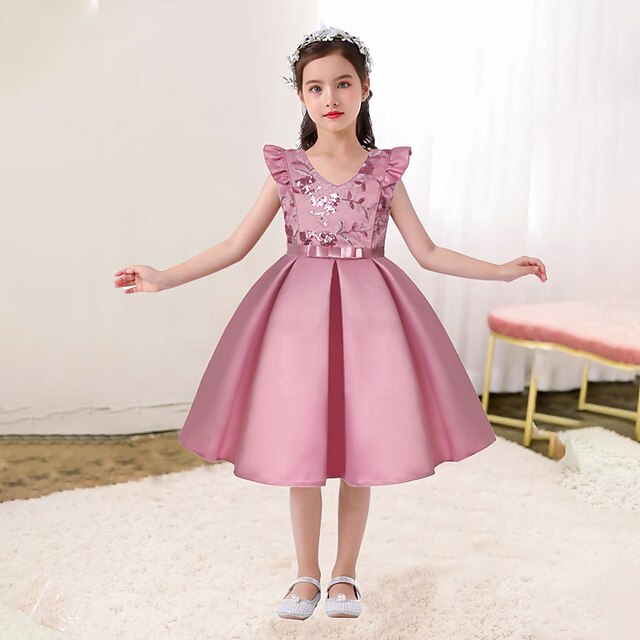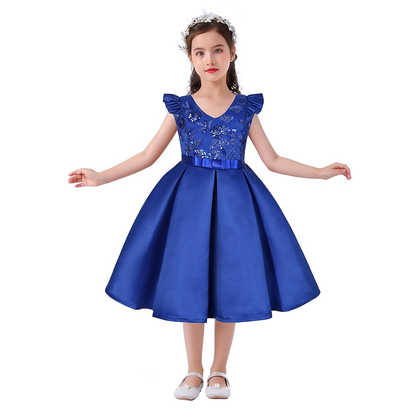 More information about Kids Girls' Party Dress Solid Color Sleeveless Formal Performance Wedding Lace Adorable Daily Beautiful Cotton Midi Party Dress Floral Embroidery Dress Flower Girl's Dress Summer Spring Fall 3-10
