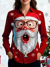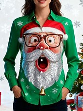 More information about Christmas Women's Shirt Graphic Santa Claus Elegant Vintage Tropical Long Sleeve Shirt Collar Regular Tops Work Daily Holiday Yellow Red Blue Green Fall Winter