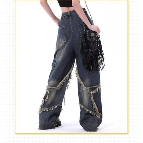 HOT ! LAFOURAM Petite Jeans for Women 5 FT Short Wide Leg Baggy Goth Star Patchwork Cargo Denim Pants