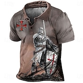 More information about Men's Knights Templar Polo Shirts Golf Shirt Short Sleeve Polo Shirts Collared Shirts Vintage Casual Vacation Wear Festival Wear Party Outfits Buttons 3D Print Blue Brown Coffee