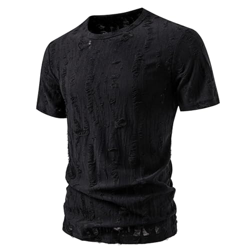 HOT ! Mens Ripped Holes T Shirts Summer Distressed Short Sleeve Casual Hipster Hip Hop Crewneck Shirts Fashion Y2k Streetwear