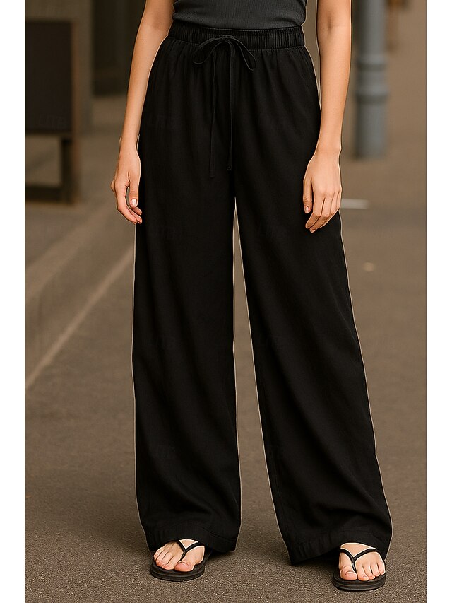 More information about Women's Wide Leg Chinos Basic Casual Full Length High Waist Plain Pocket Elastic Waistband Comfy Soft Comfortable Stretchy Outdoor Street Black Pink Navy Blue Coffee Summer Spring Regular Fit