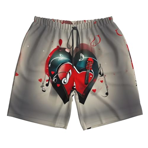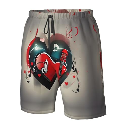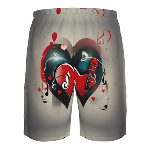HOT ! Treble Love and Music Print Stylish Beach Shorts Swim Trunks Lightweight Breathable Summer Outdoor Activities