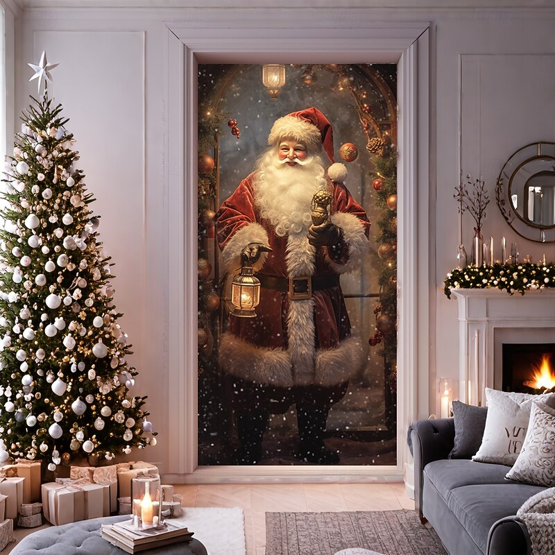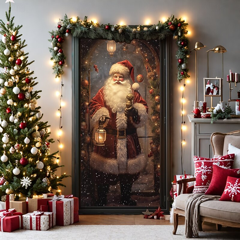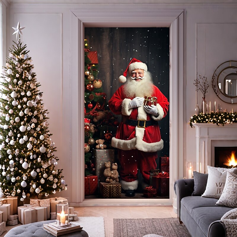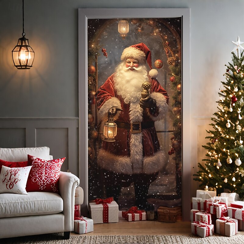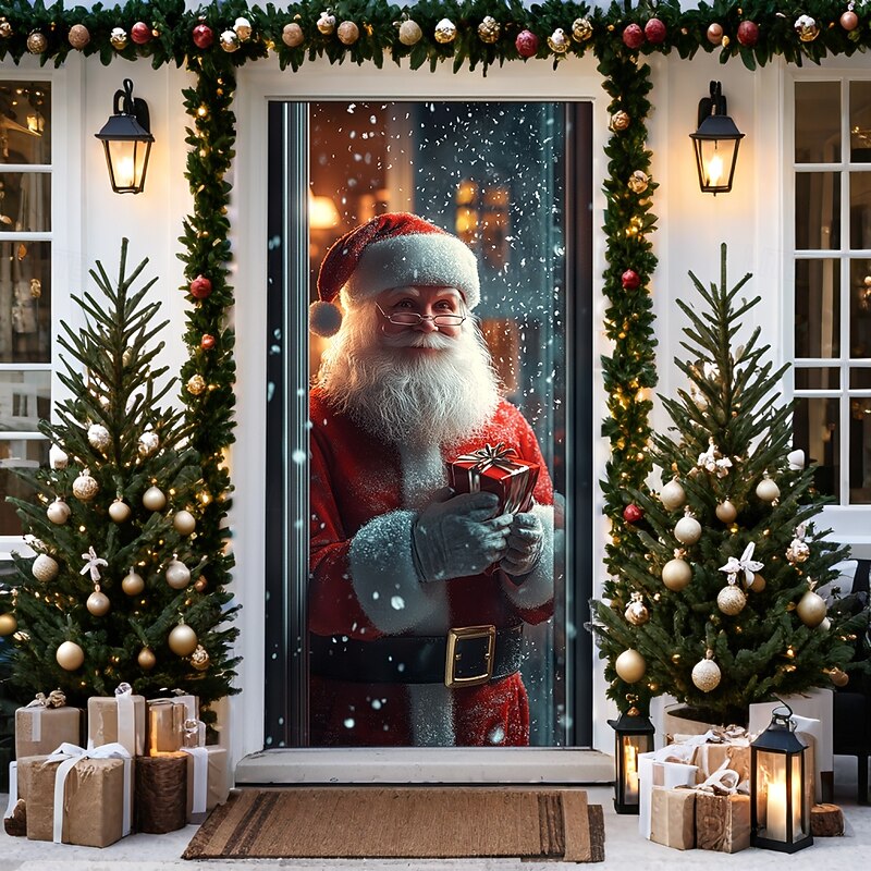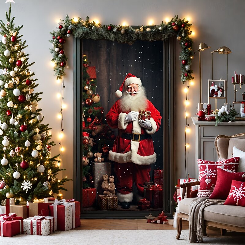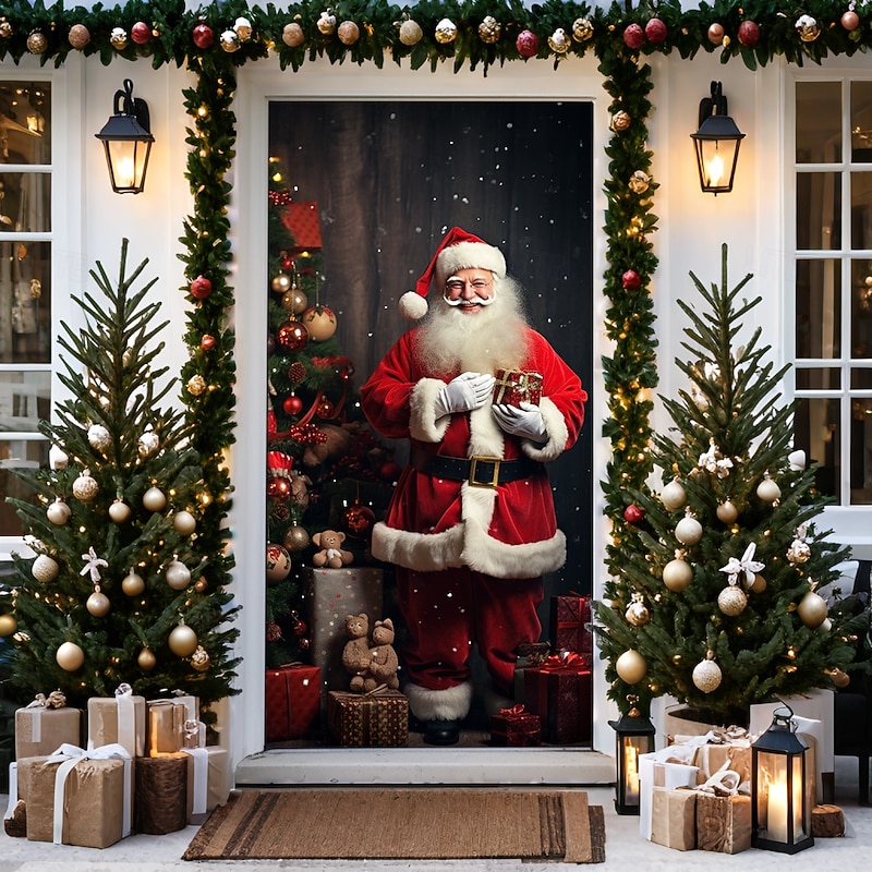HOT ! Christmas Door Decorations Door Covers Xmas Santa Standing Door Tapestry Door Curtain Decoration Backdrop Door Banner for Front Door Farmhouse Holiday Party Decor Supplies Indoor/Outdoor