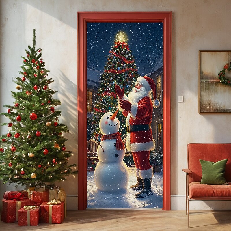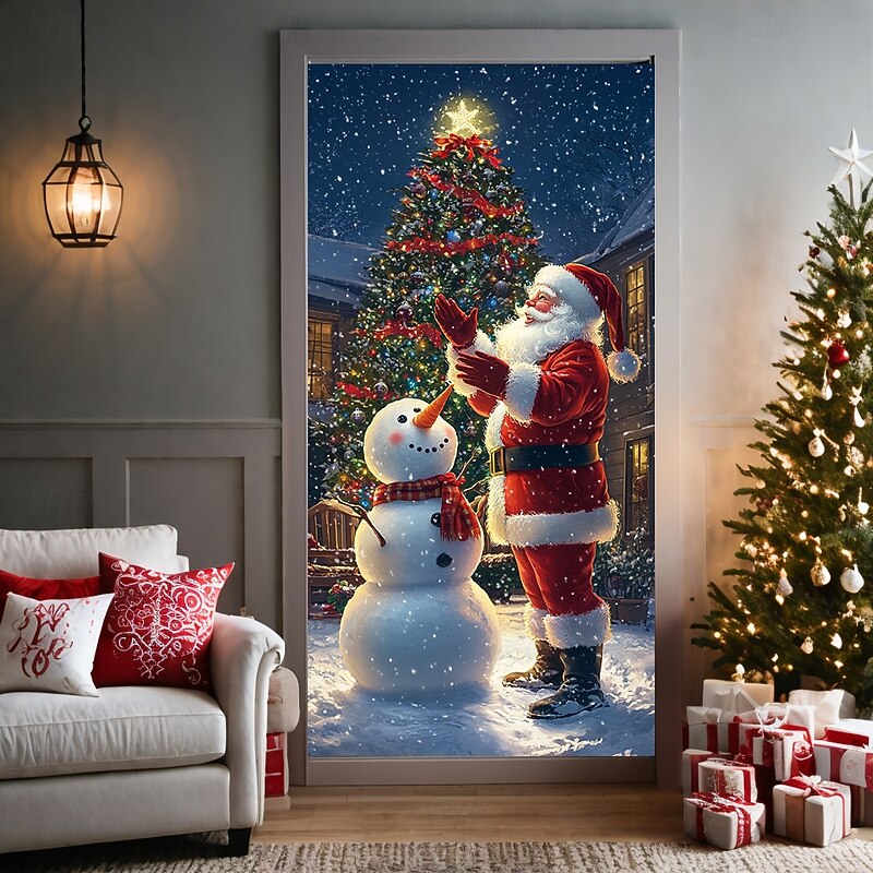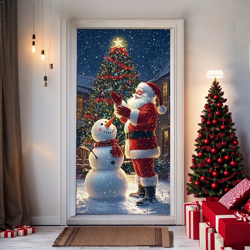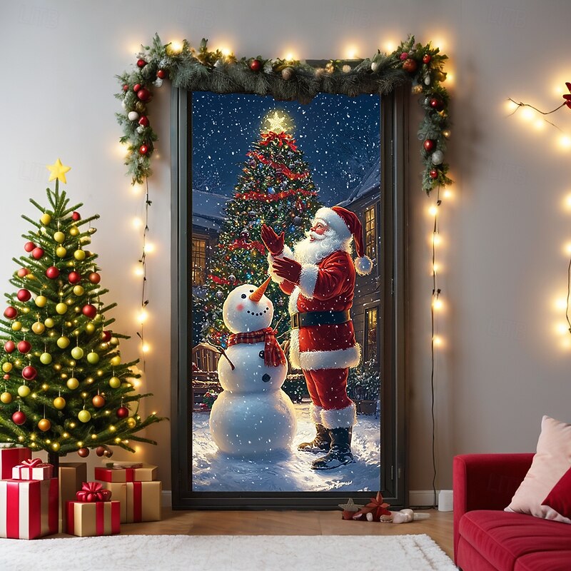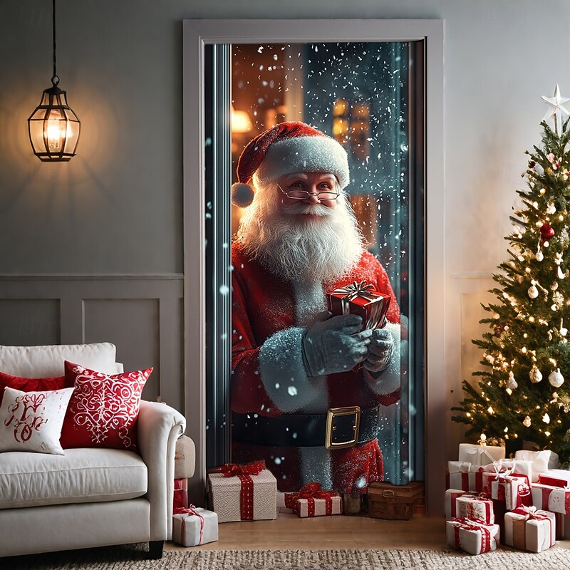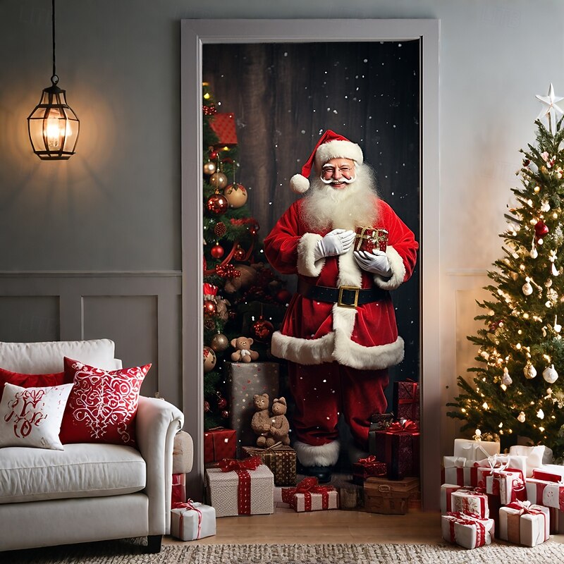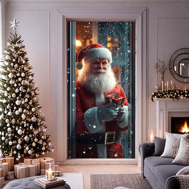 HOT ! Christmas Door Decorations Door Covers Xmas Santa Standing Door Tapestry Door Curtain Decoration Backdrop Door Banner for Front Door Farmhouse Holiday Party Decor Supplies Indoor/Outdoor