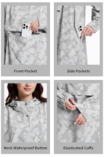 Fahsyee Rain Poncho for Women Adult Waterproof Jacket – Lightweight Packable Raincoat Jackets with Hood and Pockets 7
