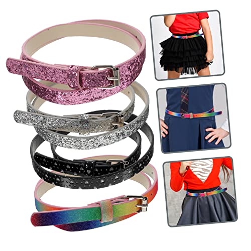 4pcs Boy Girl Heart Shaped Glitter Belts Pu Leather Waist Belts for Girls Dresses Pants School Uniforms Rainbow 4