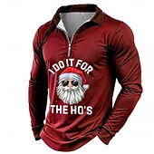 More information about Christmas Men's Santa Claus Zip Polo Long Sleeve Polo Shirts Collar Business Casual Vacation Party Evening Wear New Years Eve Shirts 3D Print Spring Fall & Winter Black Wine Blue