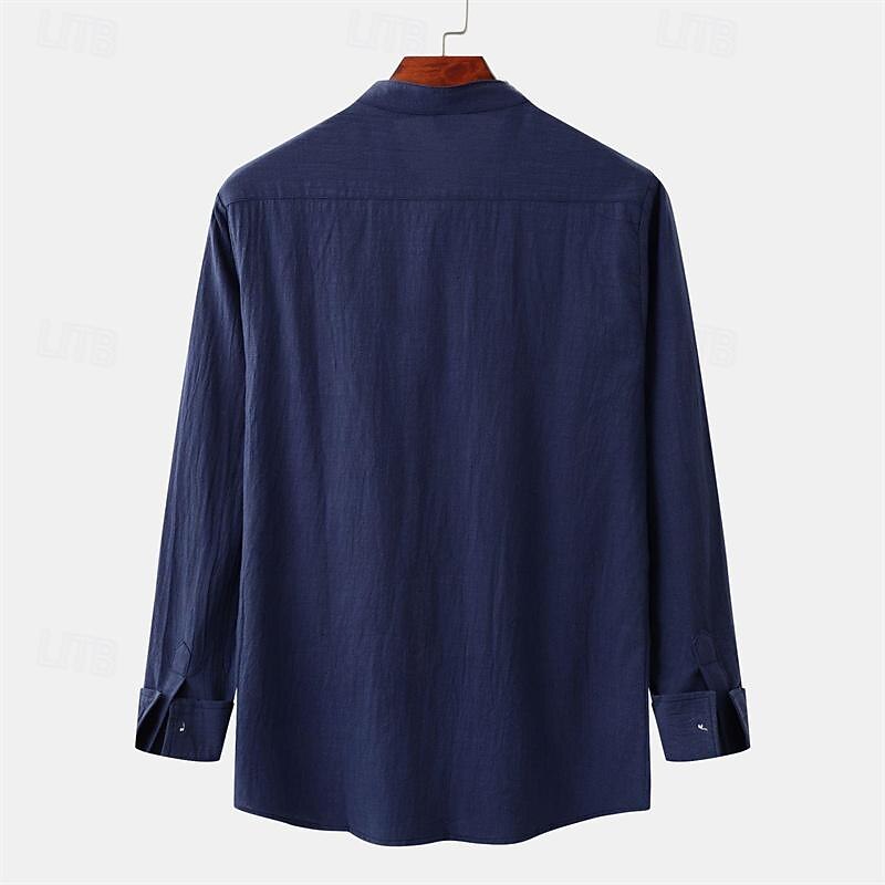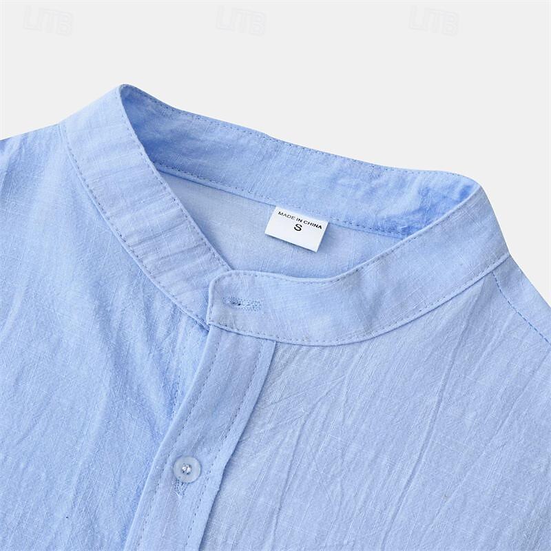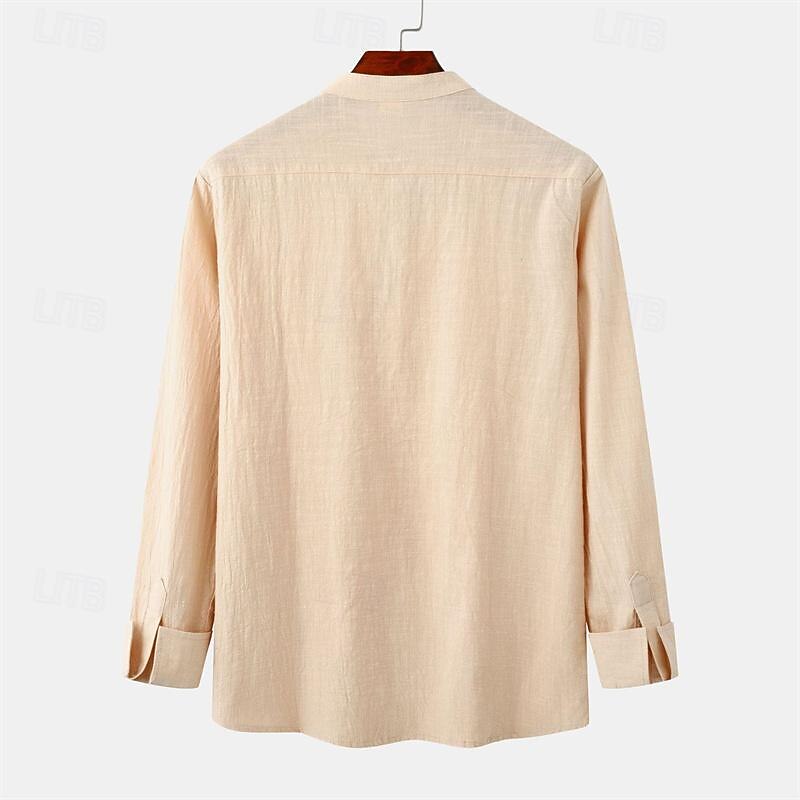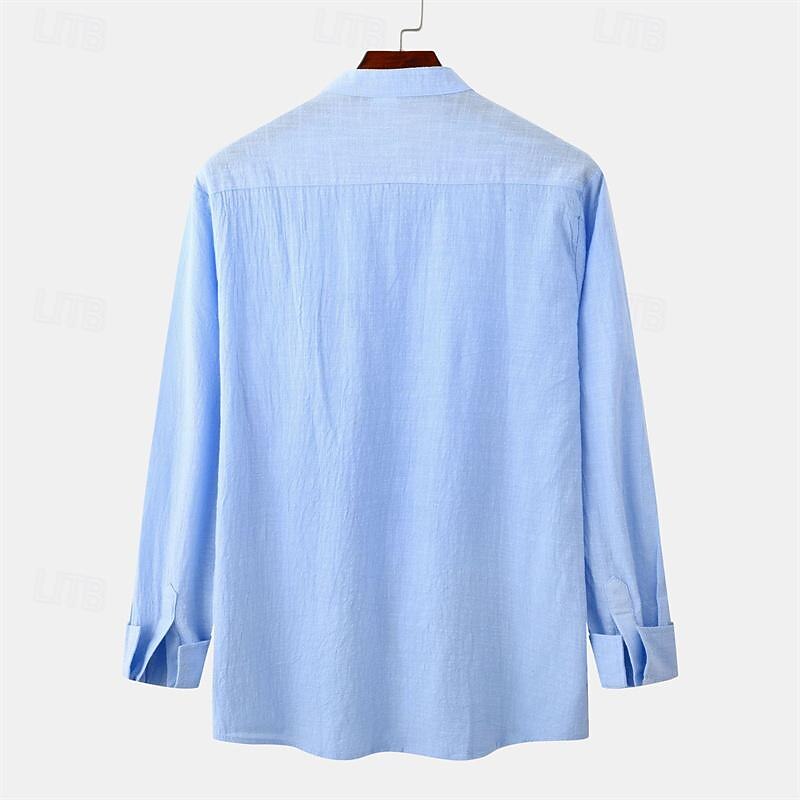 Highlights [Fabric and Material] : Crafted from a blend of cotton and linen, this men's shirt is lightweight and breathable, ensuring comfort throughout the spring and fall seasons. The fabric's natural properties make it ideal for keeping cool and stylish. [Fit and Cut] : This shirt boasts a straight fit with long sleeves, providing a relaxed yet sophisticated look. It's designed to accommodate a range of body types, making it a versatile addition to any wardrobe. [Design Highlights] : Featuring a modern band collar, this shirt offers a contemporary twist on the classic button-down style. The addition of a single front pocket enhances its functionality without compromising on its sleek, minimalist design. [Occasions] : Perfect for vacation, holidays, casual daily wear, and streetwear, this shirt effortlessly transitions from a laid-back Hawaiian vibe to a polished everyday look. Its plain pattern offers stylized simplicity for various occasions. [Size Range] : Available in sizes S, M, L, XL, and 2XL, this shirt caters to a wide audience, providing a fit that complements different preferences and styles.
