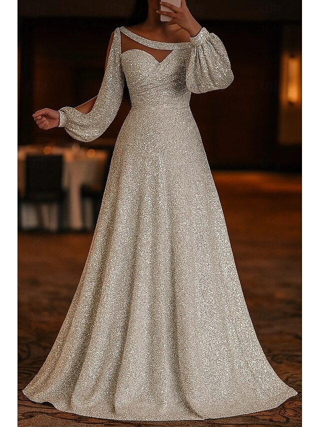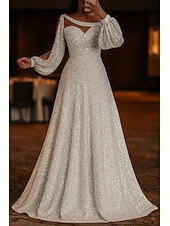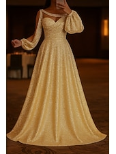 More information about Black Tie A-Line Glittering Evening Gown Elegant Dress Formal Wedding Sweep / Brush Train Long Sleeve Sweetheart Jersey with Ruched 2025