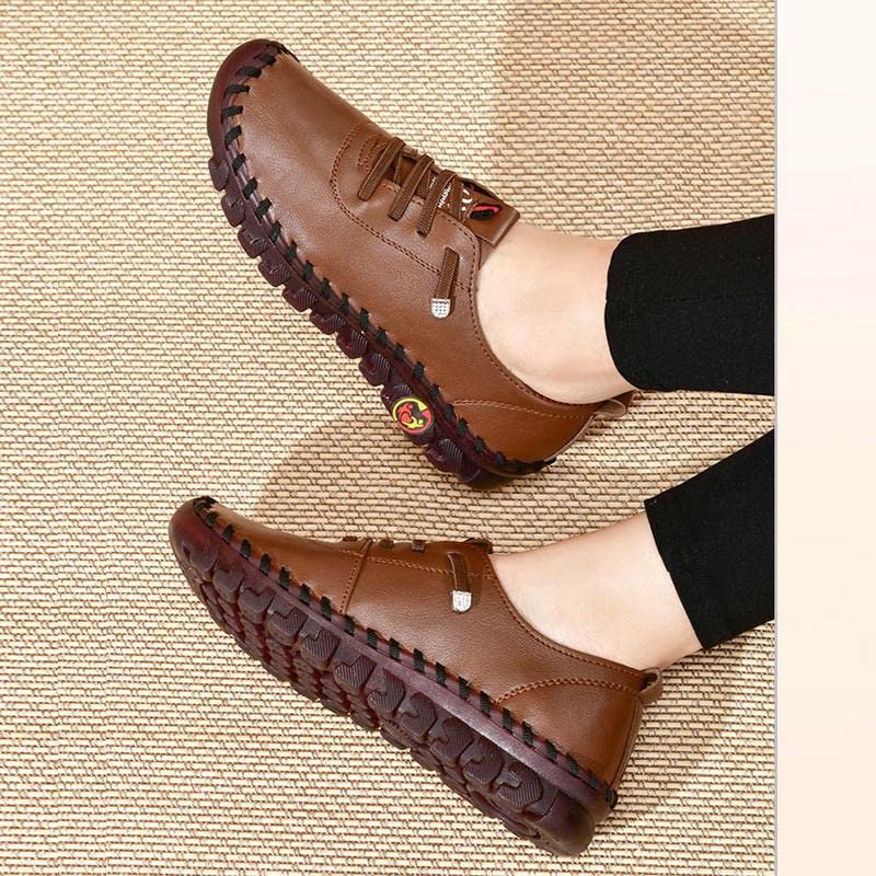 Women's Leather Soft Bottom Flat Shoes Slip On Handmade Beef Tendon Leisure Set of Feet Comfort Rubber Sole Mom Loafers 5