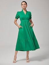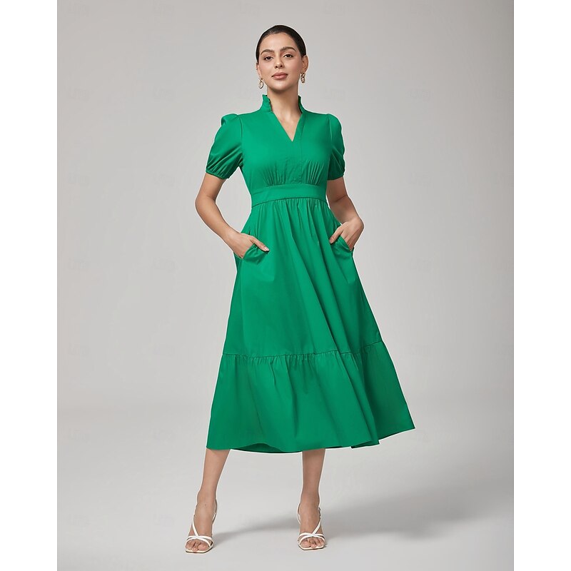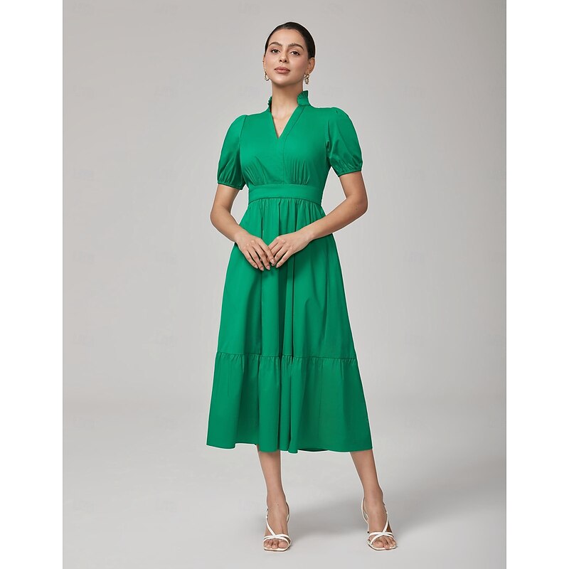More information about Deep Moss Green Cotton Puff Sleeve Dress