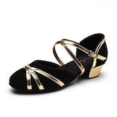 More information about Women's Black and Gold Latin Dance Shoes – Strappy Design with Low Heels and Suede Sole for Performance