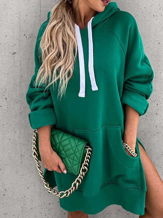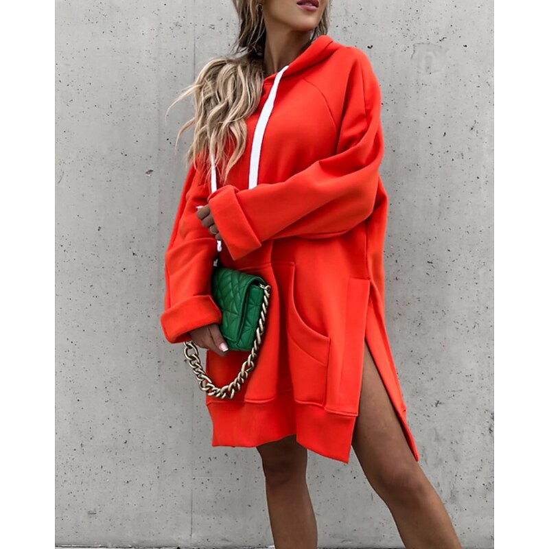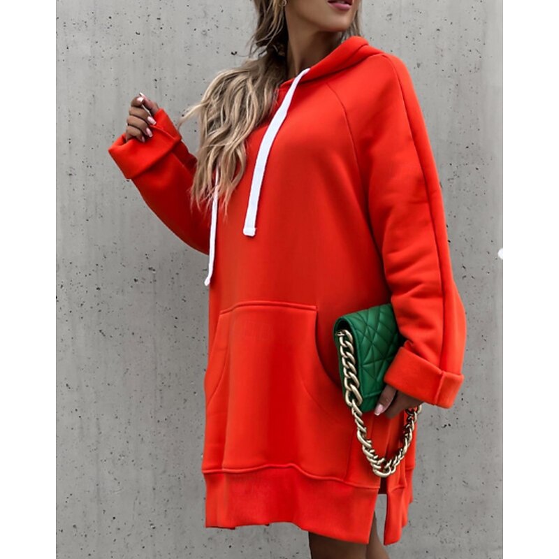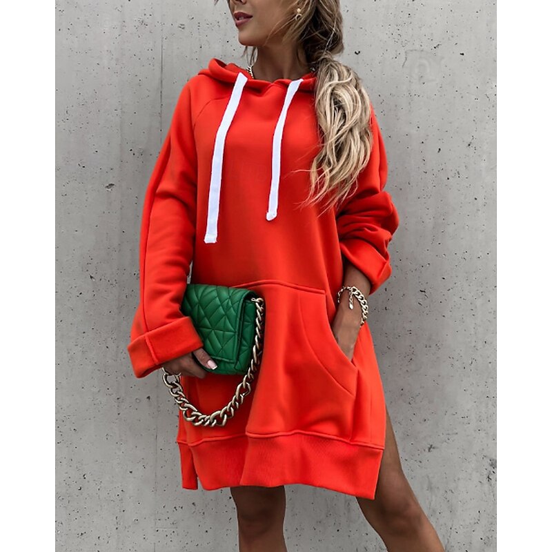 More information about Women's Pullover Hoodie Sweatshirt Plain Streetwear Casual Long Sleeve Hooded Regular Tops Street Holiday Going out Pocket Black Orange Green Khaki Fall Winter