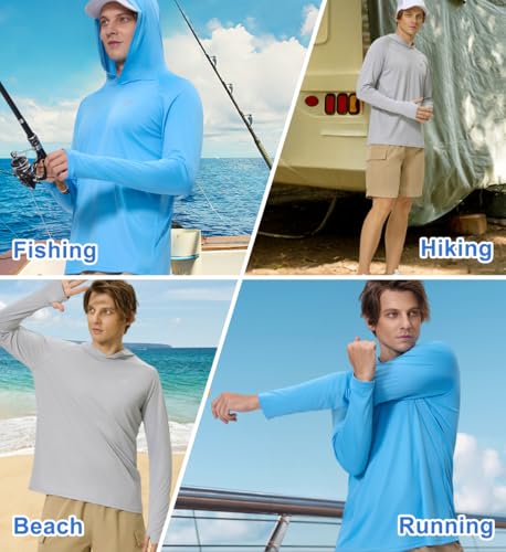 Mens UPF 50+ Fishing Shirts Long Sleeve UV Sun Protection Hoodie Rash Guard Hiking Running Swimming 4