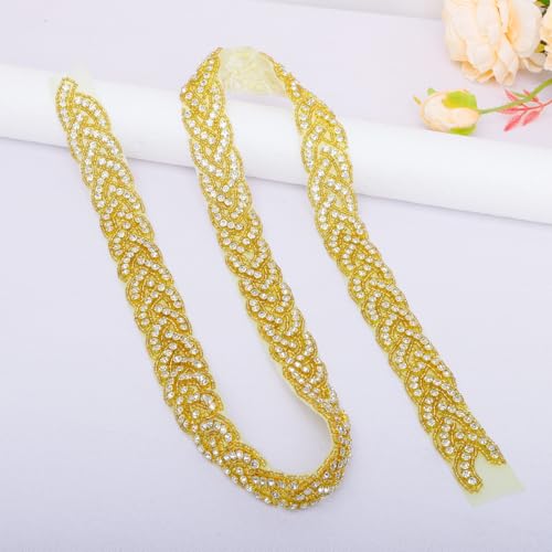 • Handmade Rhinestone Applique Wedding Sash Belt:1Pack 2.5 cm wide and 95 cm long Gold wedding belt for bride dress