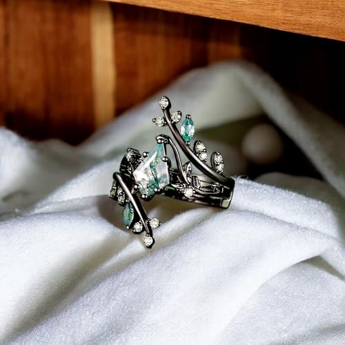 • "Unique Vintage-Meets-Modern Design" Combines Art Deco’s geometric elegance with bohemian leaf motifs. The kite cut maximizes moss agate’s natural fern-like patterns, while moissanite adds subtle brilliance for everyday or occasion wear.