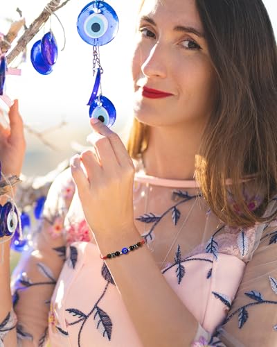 • Material & Size - The bracelet is made of red string with 6mm stone beads and 8mm evil eye. The bracelet length is adjustable, and the maximum size is 10 inches.