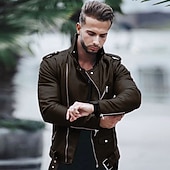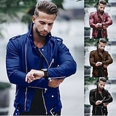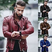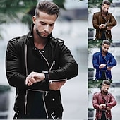 More information about Men's Jacket Faux Leather Jacket Biker Jacket Motorcycle Jacket Business Daily Thermal Warm Windproof Pocket Fall Solid Color Streetwear Business Turndown Short Faux Leather Regular Fit Black Wine