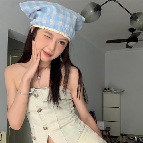 Girls Teens Cat Ear Hat Woman Hat with Small Grape Pendant Woman Teens Spring Sunproof Lace Trim Pullover Hat 7