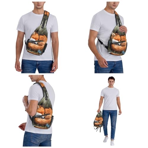 Sling Bag for Women Men Crossbody Bag Small Sling Backpack A Sleeping Fox Chest Bag Hiking Daypack 6