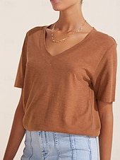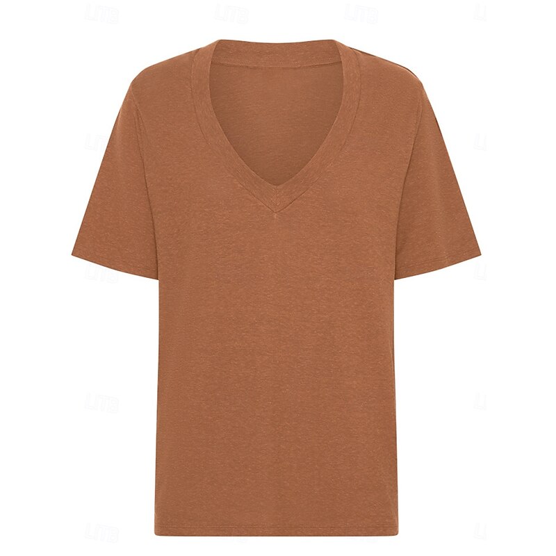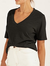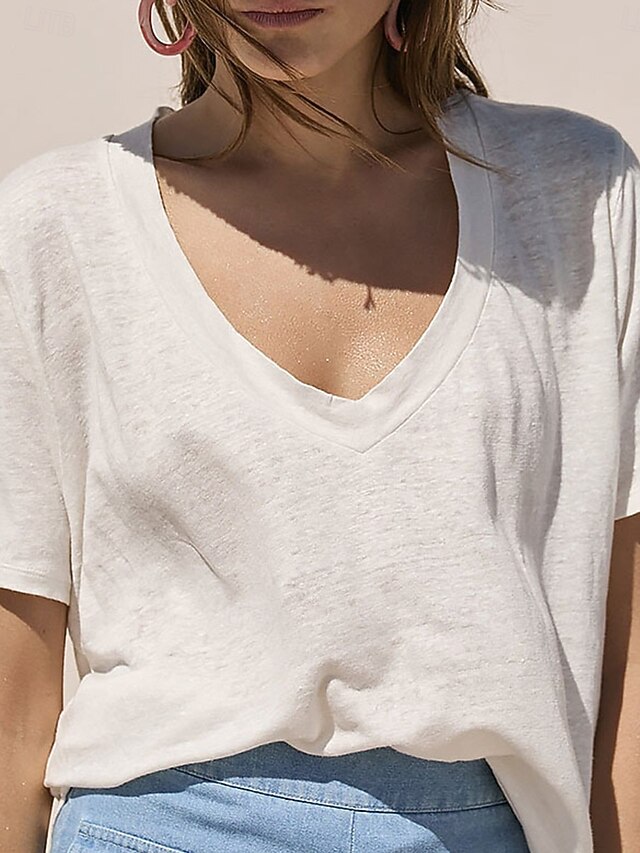 More information about Women's Blouse Solid Color Basic Casual Short Sleeve V Neck Regular Tops Daily Lace Ruffle Patchwork Black White Brown Summer Spring