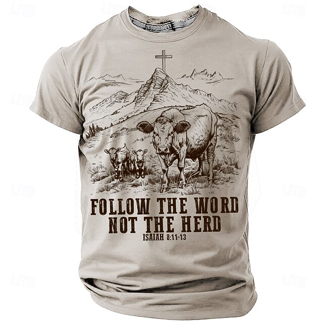Men's Christian T Shirt Short Sleeve T shirt 3D Print Crew Neck Shirt Fashion Daily Casual Street Casual Daily Light Blue Green Khaki Summer Spring All Seasons Clothing Apparel S M L XL XXL XXXL 7