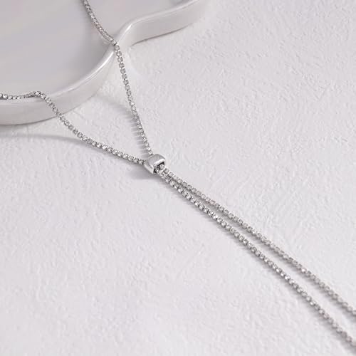 FAMARINE CZ Long Necklace, Rhinestone Bar Y Lariat Necklace Silver Tone for Women Birthday 1