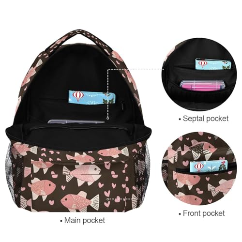 Love Fish Brown Backpack for School Boys Girls Adults Kids Bookbag Laptop Bag 18L 6