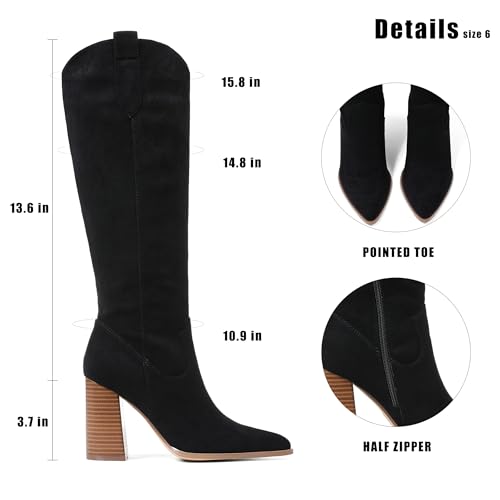 • Features: Faux suede design, western style, pointed toe, wide calf, chunky heel, pull Tabs