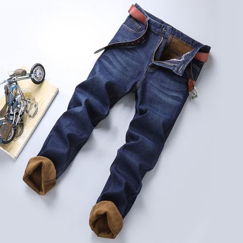 Fleece Lined Jeans for Men Stretch Winter Thermal Pants Business Casual Straight Pants Durable Outdoor Wear Trousers 6