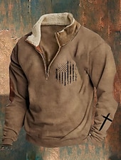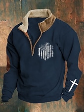 More information about Men's Sweatshirt Quarter Zip Sweatshirt Navy Blue Brown Brown 2 Half Zip Color Block Cross American Flag Half Zip Print Sports & Outdoor Daily Holiday Polyester Vintage Streetwear Casual Fall & Winter