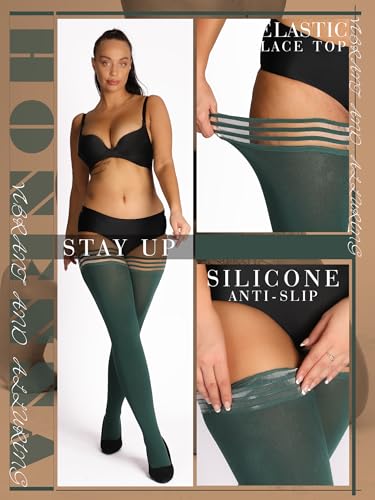 HONENNA Fleece Lined Thigh High Stockings, 8+ Colors Stay Up Lace Top Opaque Winter Warm Tights for Women 7